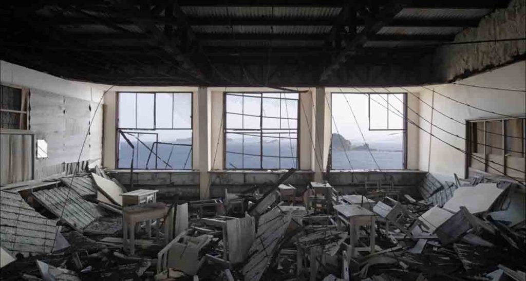 This movie reminds me of an art show of abandonment put on by Christian Richter. I happened to have the privilege of interviewing him and discussing his skill of finding these amazing locations and it definitely was a lot of work researching them and then plotting a way in. I’m certain that Geyrhalter had to be conscious of doing exactly the same thing in order to find these pristine (in the destructive sense of the word) locations. It almost began to be a game for me as I tried to guess where each one originated from. Oh, There is Fukushima and Nagaski for sure!! Here, here are a few of the shots that stood out to me: